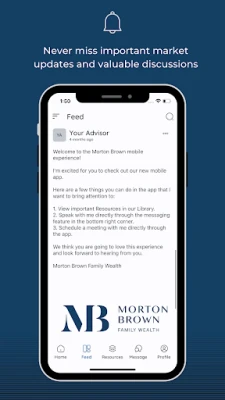 The Morton Brown Family Wealth app offers a user-friendly platform that allows clients to stay informed with timely content on market trends and financial planning topics.