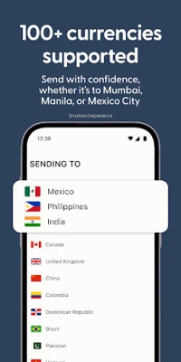 • Send a money transfer to the Philippines, India, Vietnam, México, Dominican Republic, Nigeria, Pakistan, China, Ghana, Kenya, Colombia, Brazil, Guatemala, El Salvador, Honduras, Nicaragua, Costa Rica, Panamá, Ecuador, Peru, Bangladesh, Indonesia, Korea, Nepal, Thailand and more